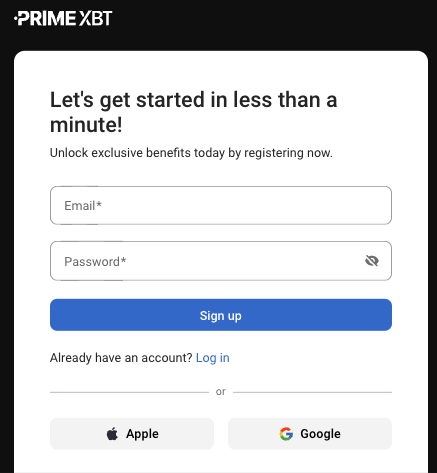 • Visit the PrimeXBT website and click on “Open a free account”.